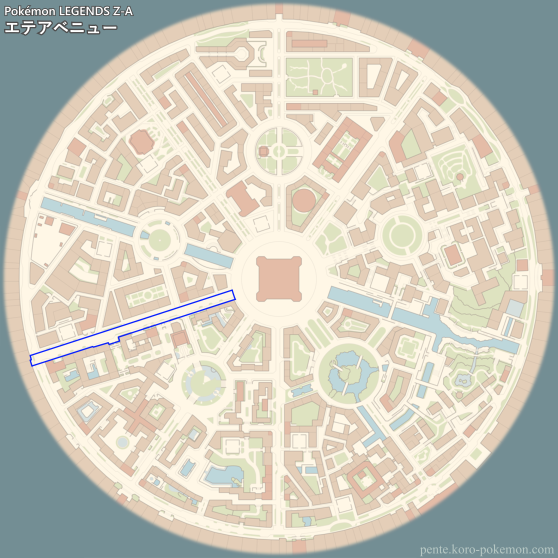 『Pokémon LEGENDS Z-A』(ポケモンレジェンズZ-A/ポケモンZA) で登場するミアレシティ「エテアベニュー」のマップデータ。