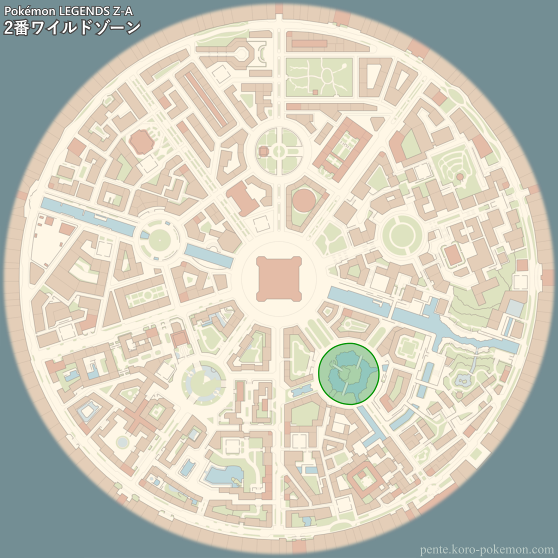 『Pokémon LEGENDS Z-A』(ポケモンレジェンズZ-A/ポケモンZA) で登場するミアレシティ「2番ワイルドゾーン」のマップデータ。