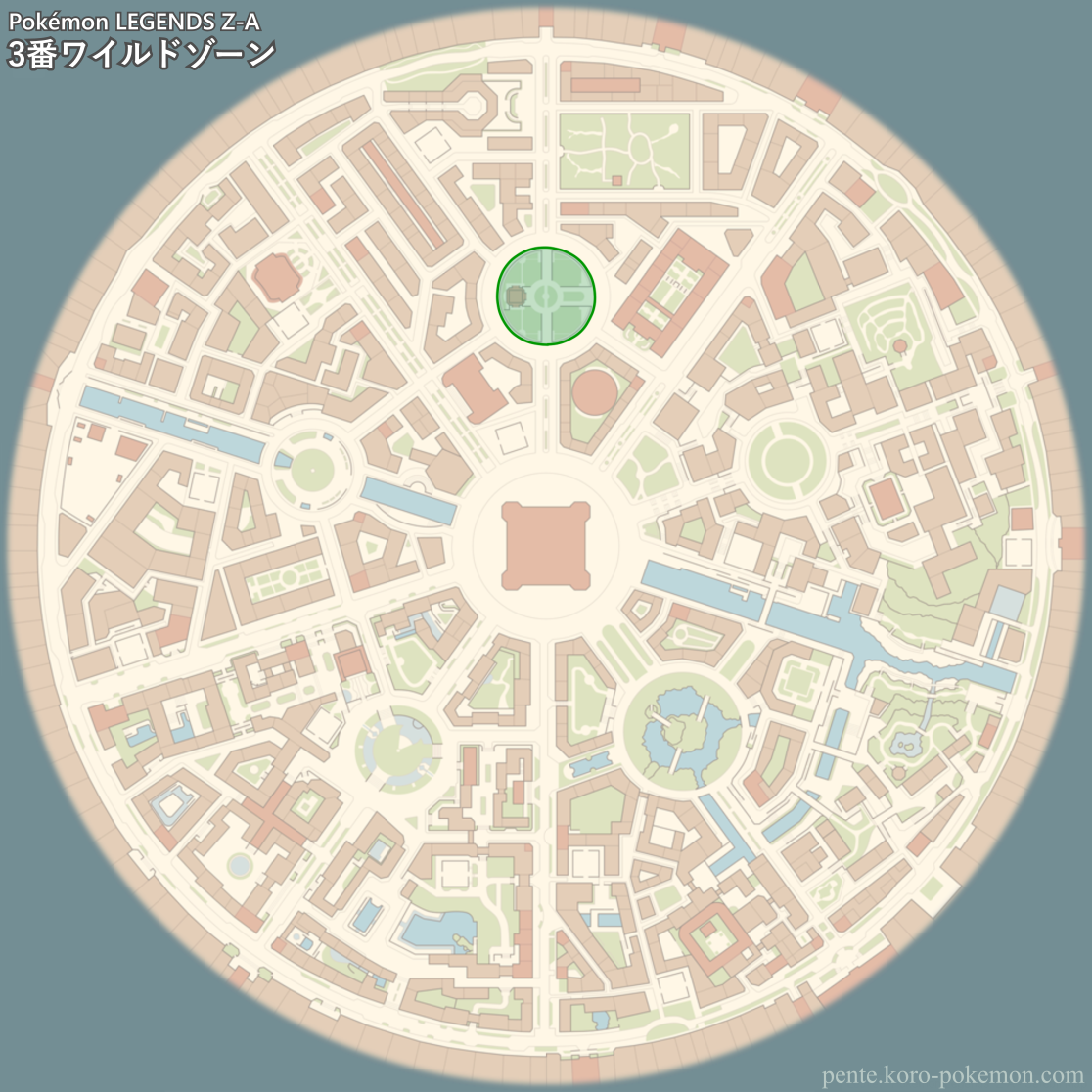 『Pokémon LEGENDS Z-A』(ポケモンレジェンズZ-A/ポケモンZA) で登場するミアレシティ「3番ワイルドゾーン」のマップデータ。