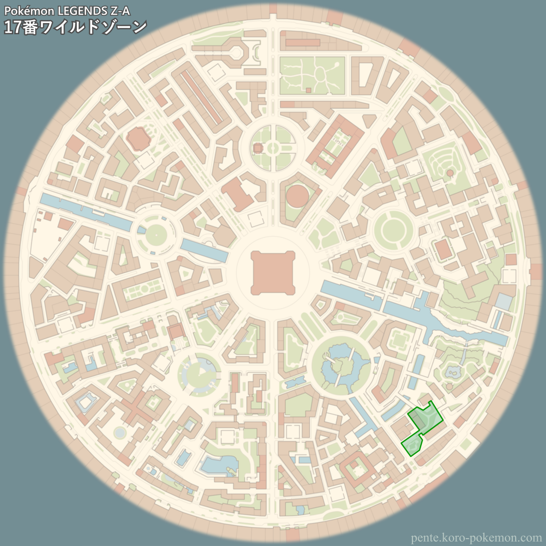 『Pokémon LEGENDS Z-A』(ポケモンレジェンズZ-A/ポケモンZA) で登場するミアレシティ「17番ワイルドゾーン」のマップデータ。
