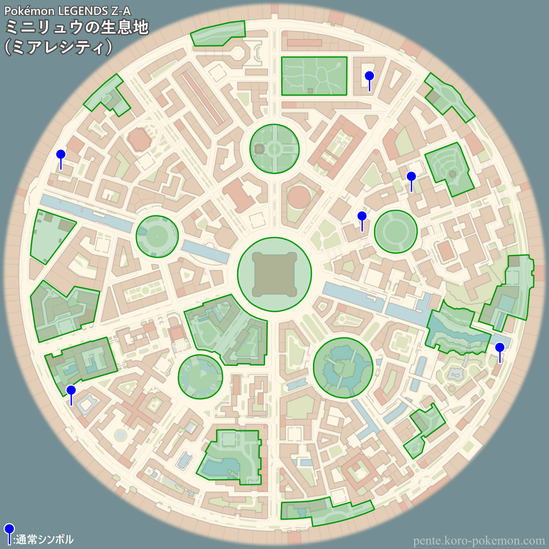 『Pokémon LEGENDS Z-A』(ポケモンレジェンズZ-A/ポケモンZA) の冒険の舞台ミアレシティにおけるミニリュウの生息地/分布図。